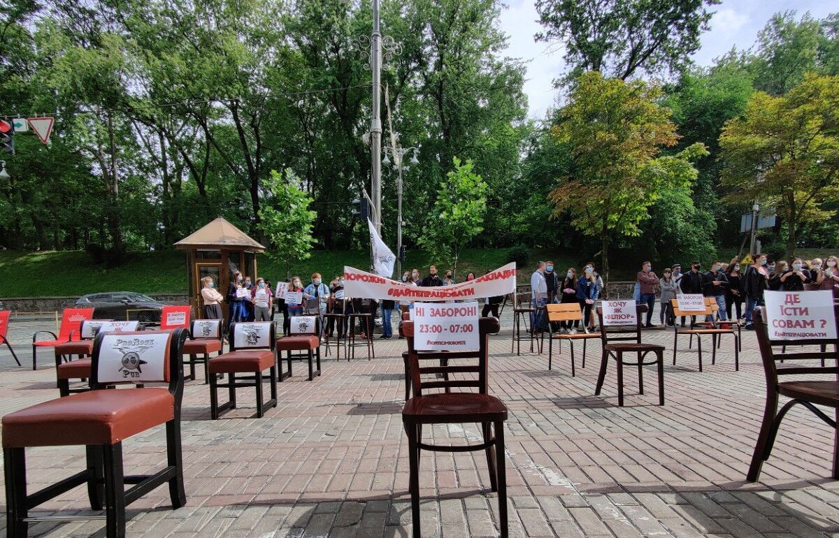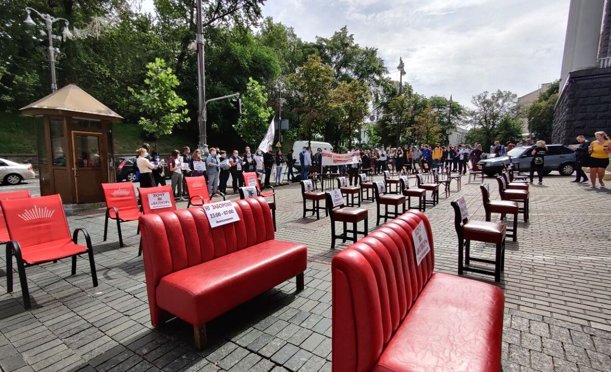 Ресторатори під Кабміном організували акцію протесту. Вони вимагали від чиновників звернути увагу на роботу закладів нардепів.