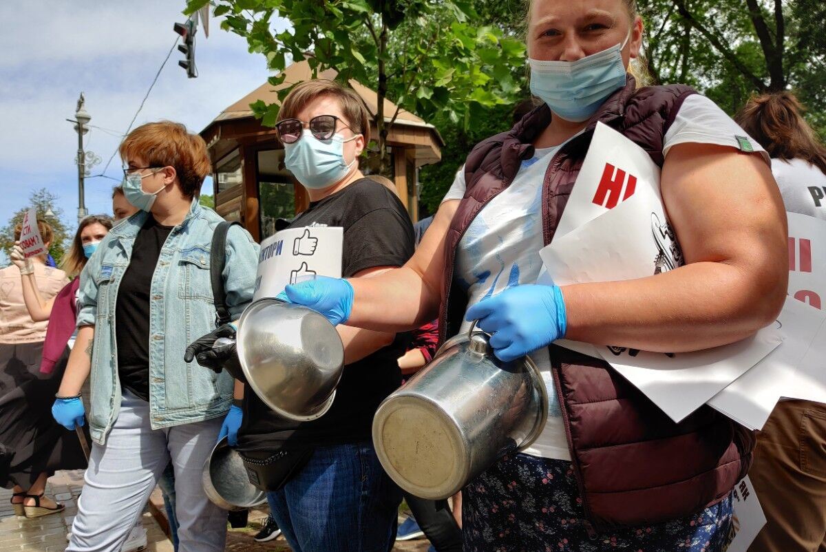 Хочу як Велюр: ресторатори з каструлями вимагали під Кабміном справедливості (Фото)