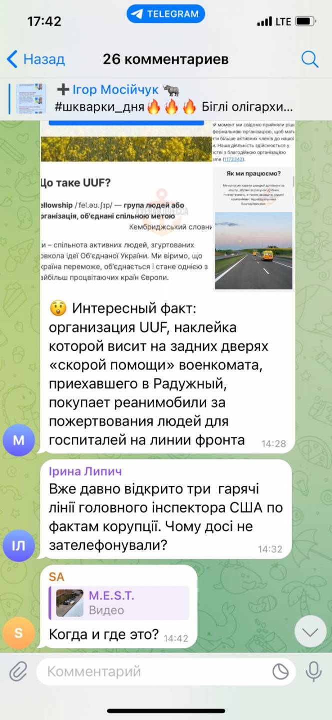 Зрадник систематично поширює дописи, в яких намагається спаплюжити честь Президента України Володимира Зеленського, Головнокомандувача ЗСУ Валерія Залужного, Міністра Оборони Рустема Умєрова. Колишній нардеп-хабарник принижує українських військових, відкрито зневажає їх, та щоразу, в своїх відео, закликає український народ уникати мобілізації. Мосійчук знаходиться за кордоном та фінансується Медведчуком, зрадник втік, аби люди не допустили самосуду, адже він викриває ворогові стратегічні об’єкти.