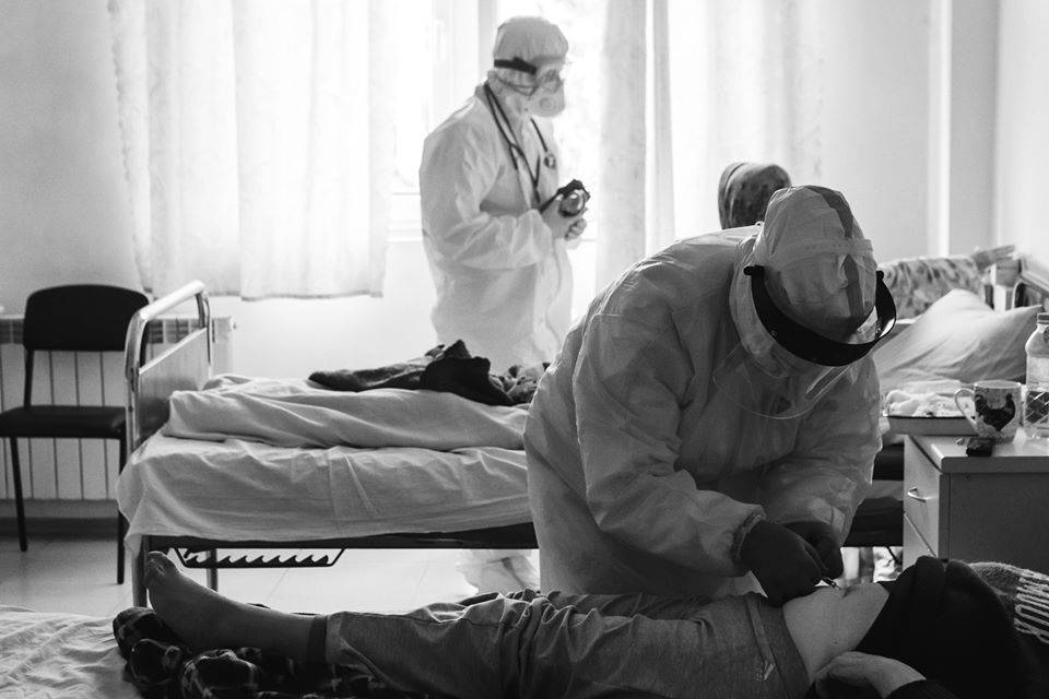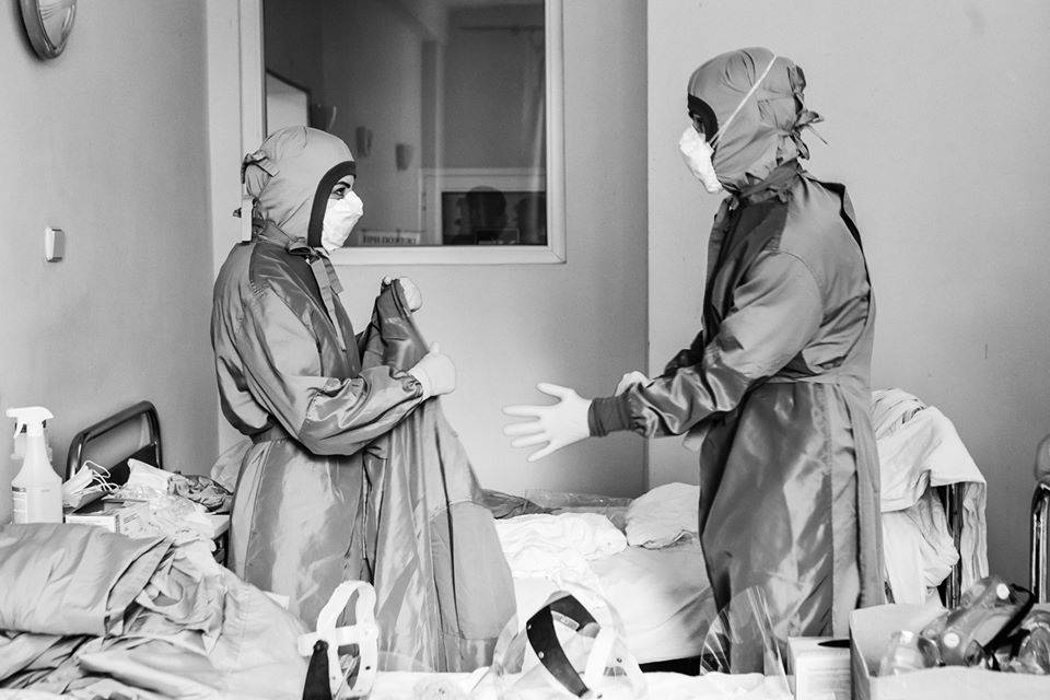 У мережі були опубліковані фотографії, на яких зображений робочий процес медперсоналу однієї з інфекційних лікарень в Закарпатській області. Фотографії виконані в чорно-білому стилі, що підсилює тривожне захоплення від споглядання самовідданого подвигу українських медпрацівників.