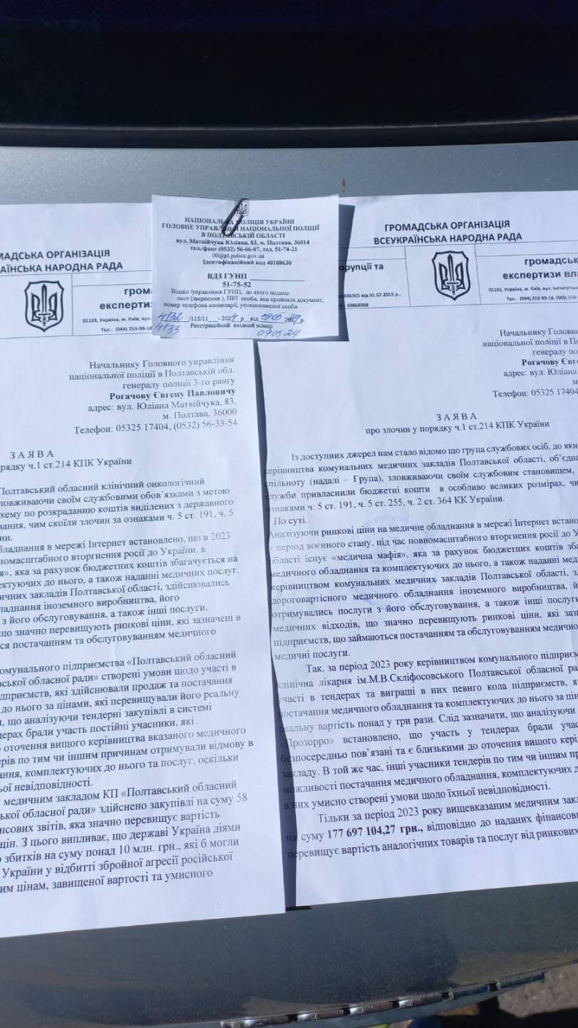 Сьогодні Голова Народної Ради протидії корупції та громадської експертизи влади Анатолій Буднік відвідав Полтавщину з приводу корупційних злочинів у державних медичних закладах та подав заяву, щодо скоєних злочинів до Національної поліції України Полтавської області.