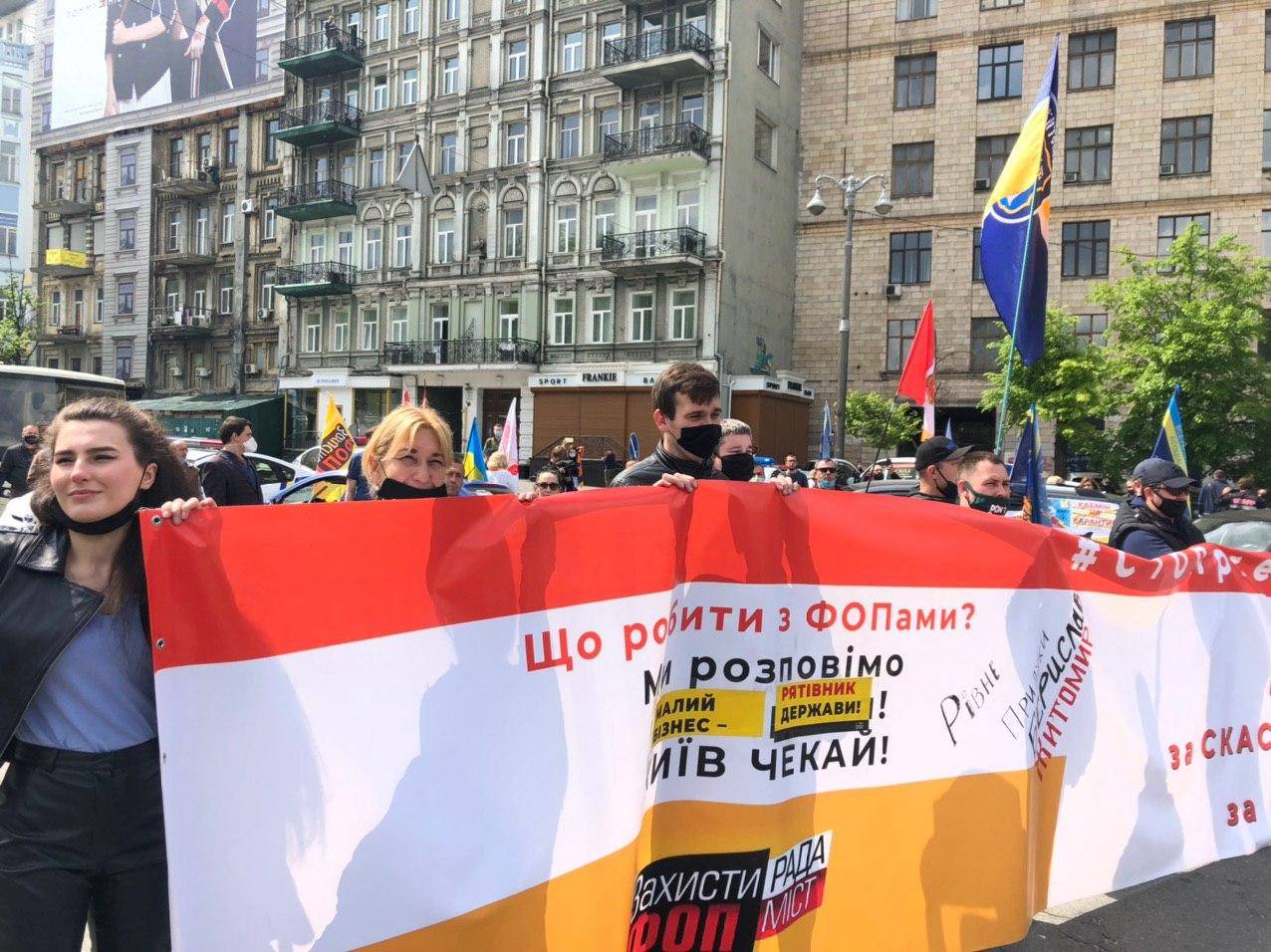 "Сьогодні зібралися підприємці, які не згодні з тим, що їм заборонили працювати. Основний меседж: карантин - це зрада українського народу. В юридичній площині немає обмежень при надзвичайній ситуації, і всі заяви Кабміну щодо дотримання заходів безпеки мають виключно рекомендаційний характер. Тому кожен може виходити працювати, і, якщо поліція проти вас робить будь-які дії - заперечуйте. У Конституції України все прописано, потрібно вміти захищати себе. Зараз поліція перекрила нам дорогу і не дає можливості виступити під Кабміном, тому ми зібралися біля стадіону "Динамо". Виною тому "тітушки" від блоку Петра Порошенка, які минулого разу влаштовували провокації. Тоді акція перетворилася на політичну, і не відображала інтереси підприємців".