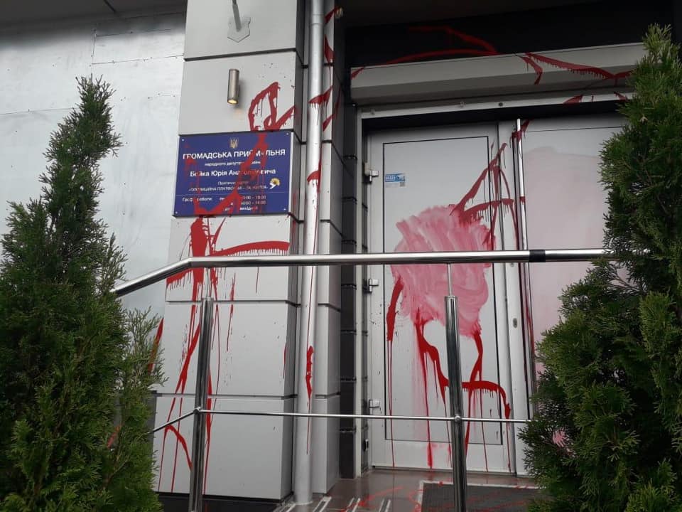 Невідомі облили двері та вікна приміщення народного депутата від Опозиційної платформи — За життя Юрія Бойка в Харкові червоною фарбою.