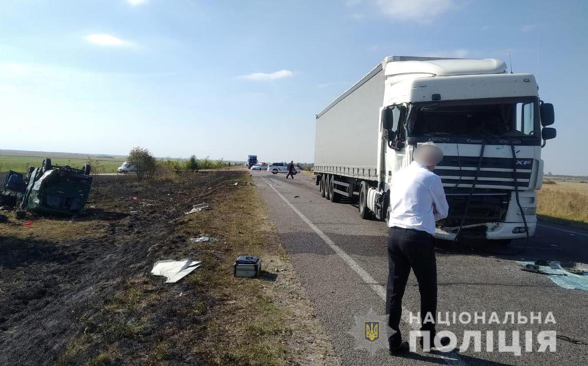 Внаслідок аварії загинули двоє пасажирів маршрутки, ще шестеро людей постраждали, п'ятьох з них госпіталізували. Водія вантажівки затримали. Вирішується питання про оголошення йому підозри.
