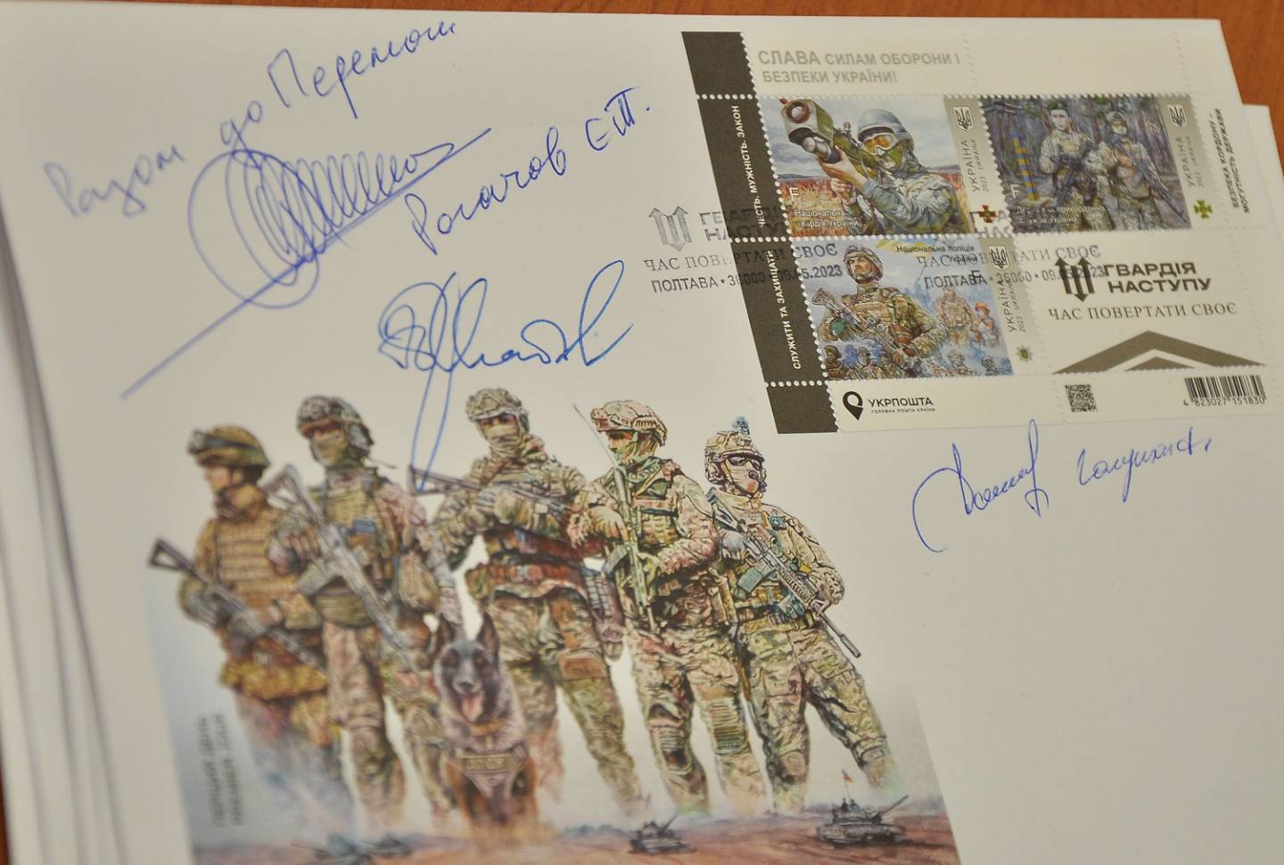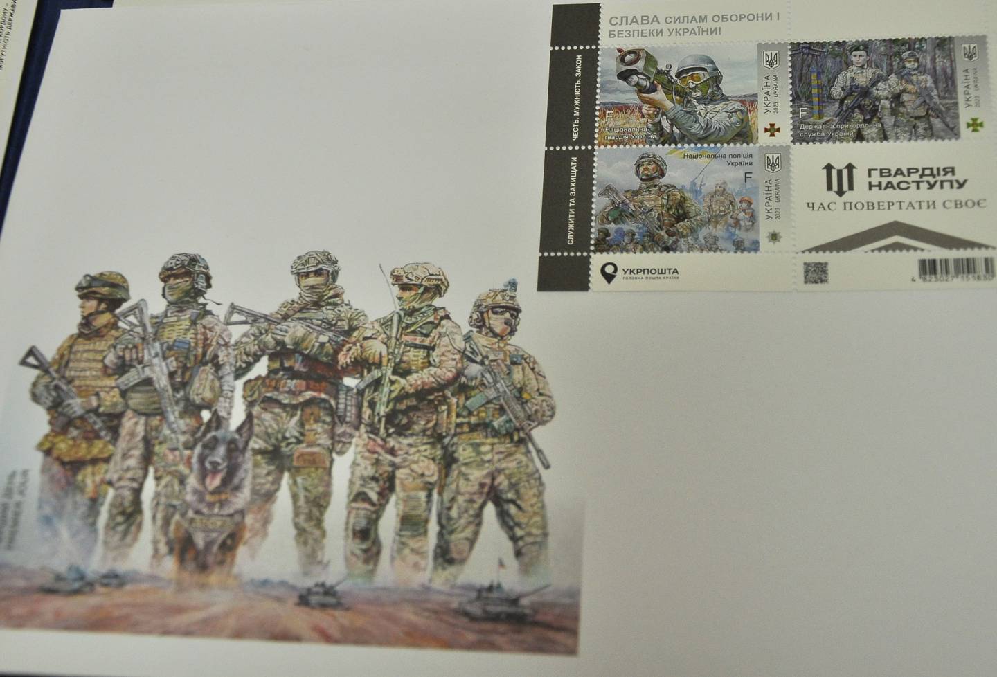 У Полтаві урочисто погасили нові марки поштового випуску, який отримав назву «Слава Силам оборони і безпеки України! Гвардія наступу!». Новий поштовий блок від «Укрпошти» продовжує тему «Слава Збройним силам України», присвячену захисникам і захисницям України, які боронять українську землю, та полеглим за суверенітет і територіальну цілісність нашої держави.