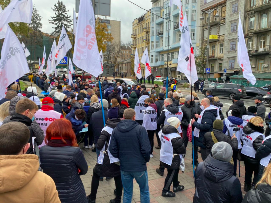 У столиці 11 листопада приватні підприємці перекрили дорожній рух на розі вулиць Грушевського і Петрівської алеї. Представники ФОПів провели акцію "Ні! – вибірковому карантину!".