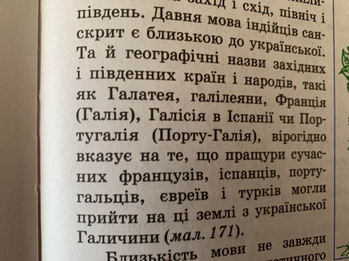 Походження мешканців цих країн частково підтверджують географічні назви. Наприклад, слова «Галлія», «Галатея», «Галісія» нібито вказують на людей, які приїхали з Галичини. З фрагментом тексту можна ознайомитися на сторінці 271.