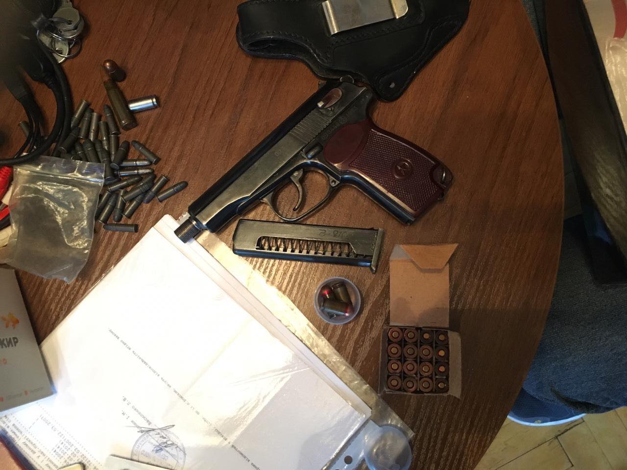 У суботу, 13 квітня, за місцем проживання підозрюваних правоохоронці провели санкціоновані обшуки, під час яких вилучили пістолет, глушник до нього, боєприпаси, гранати, балаклави, рації та інші речові докази.