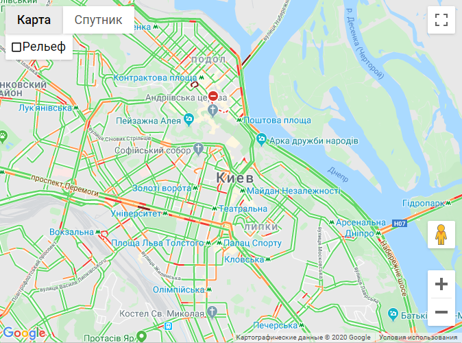На Подолі проблеми з проїздом на вул. Нижній Вал, Вехній Вал та Межигірській, а вулиця Покровська перекрита.