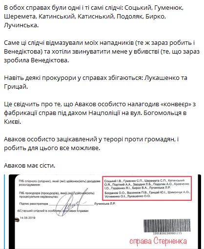 Стерненко заявляє, що дані слідчі "відмазують" від відповідальності нападників на нього. "Навіть деякі прокурори у справах збігаються: Лукашенко і Грицай", - повідомляє активіст у мережі.