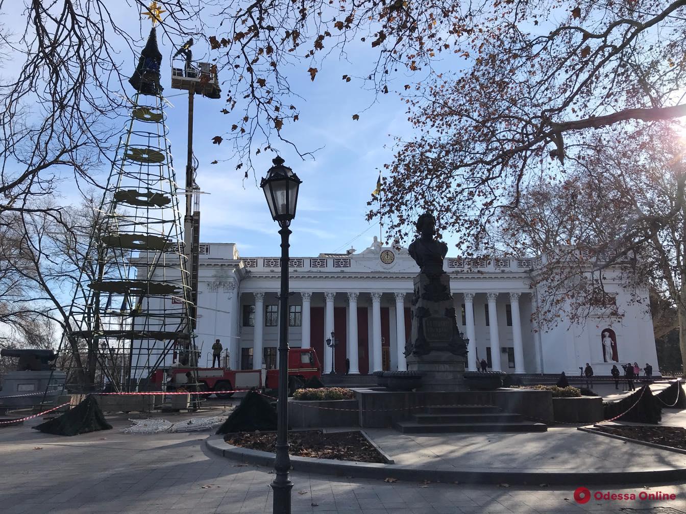 Головне новорічне дерево Південної Пальміри встановлюють на Думській площі. Висота ялинки разом з верхівкою складе близько 20 метрів, ширина - 9 метрів. Збирають її з металевого каркаса і штучної хвої з італійської сировини. Біля новорічного дерева буде розташоване "казкове містечко", на що з бюджету планують витратити близько півтора мільйона гривень. Закінчити всі роботи обіцяють вже у вівторок, а засяє лісова красуня 19 грудня. До її відкриття для одеситів і гостей міста підготували розважальну програму. А о 16:00 тут з'явиться сам Святий Миколай і роздасть маленьким одеситам солодкі подарунки.