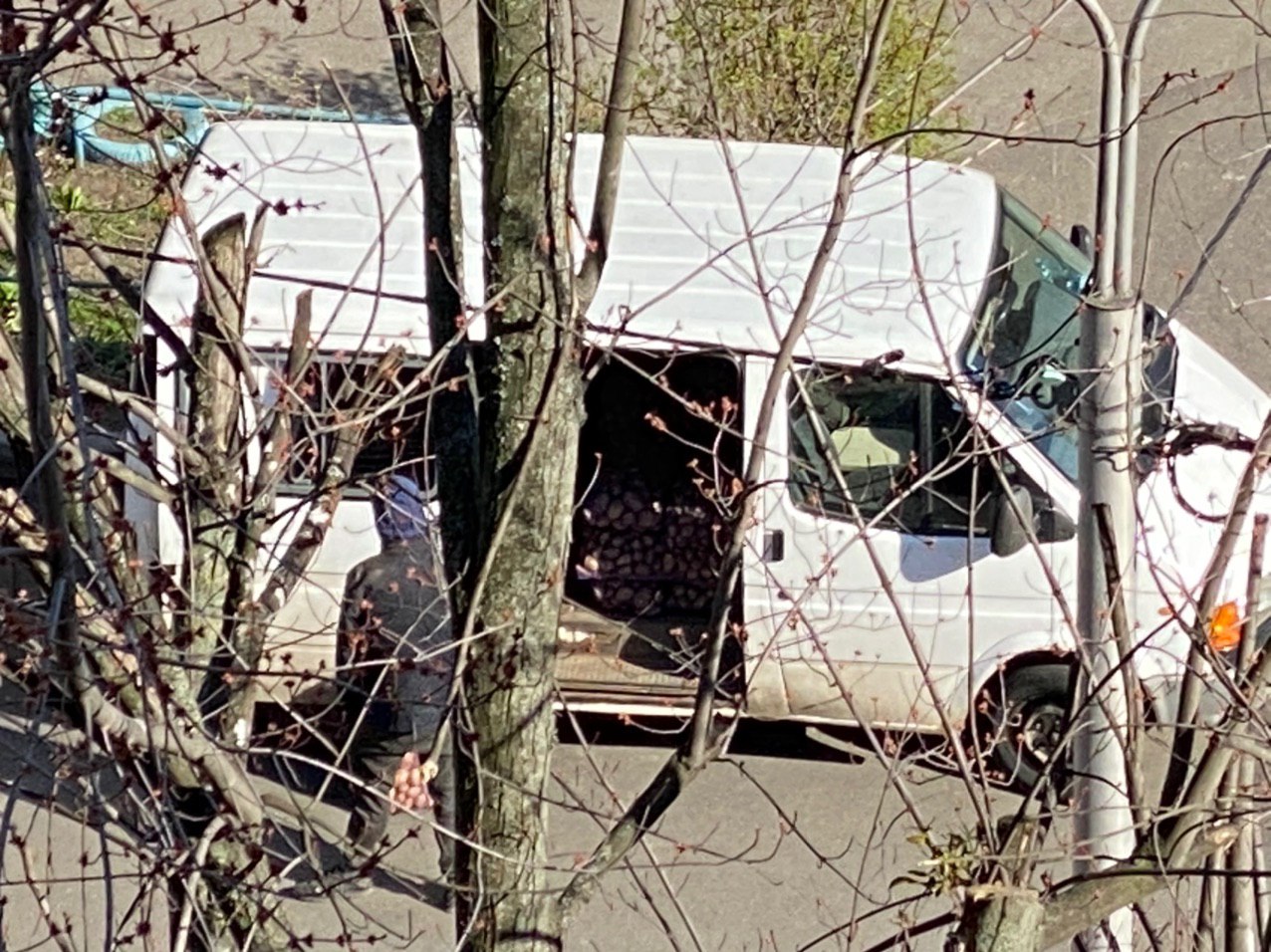 Кореспонденти ASPI помітили, як в Голосіївському районі Києва біля метро "Деміївська" під вікнами багатоповерхівок жінка з ручного гучномовця закликала купити овочі, та так, що чутно її було навіть в сусідніх кварталах: "Картопля в сітці, з доставкою додому". Поруч стояв кремезний чоловік, який, швидше за все, і доставляв продукти на будь-який поверх будинку. Хоч і картопля за ціною не відрізнялася від магазинної ні на копійку, місцеві жителі купували, та й черга утворилася. Продавці, слід зазначити, були в масках і рукавичках, а поліція, яка повинна патрулювати вулиці району і перевіряти, чи дотримуються кияни карантинного режиму, жодним чином не відреагувала на це інцидент.