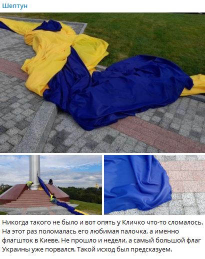 Також, як повідомляло ASPI news, у Києві очевидці помітили, що вершину 90-метрового флагштока, встановленого до Дня Незалежності, вінчає похилений державний герб України. "Что они не делают, не идут дела... видно в понедельник их мама родила", - відреагував один з користувачів мережі на дану подію.