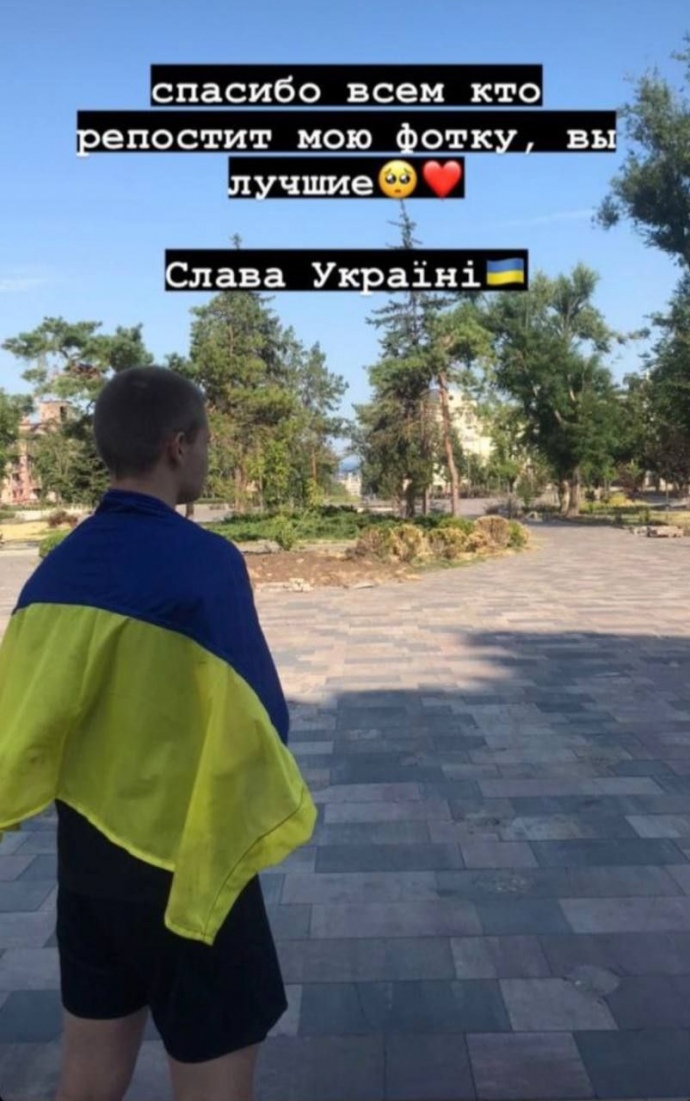 Про це написала Маріупольська міська рада: "Навіть окупований, Маріуполь не здається. Юнак вийшов на площу біля розбомбленого рашистами Драмтеатру з прапором України. Справжня сміливість зробити це, коли навіть за українську мову можна потрапити "на підвал".