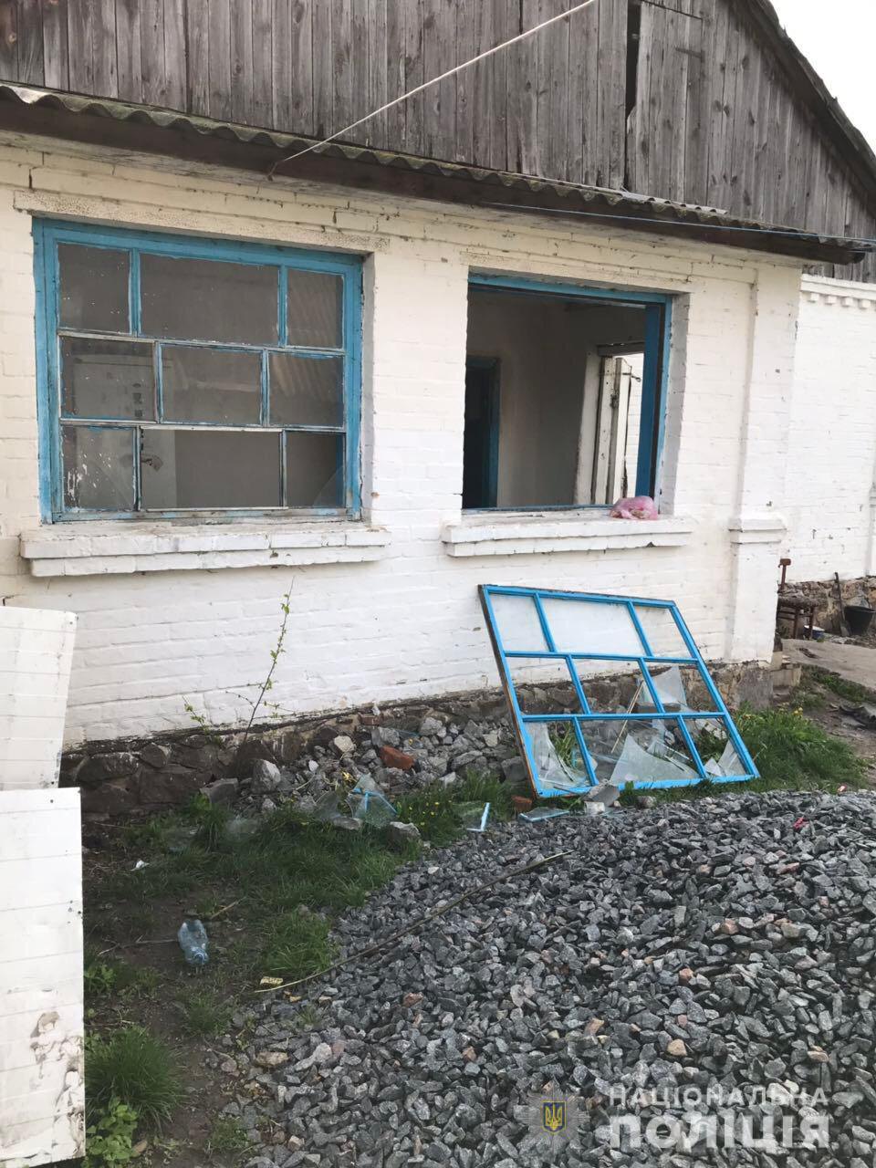 Під час проведення огляду будинку, де від вибуху пошкоджено двері та вікна, працівники поліції виявили та вилучили 2 тротилових шашки, вагою 200 та 400 гр. та 4 запали до гранат.