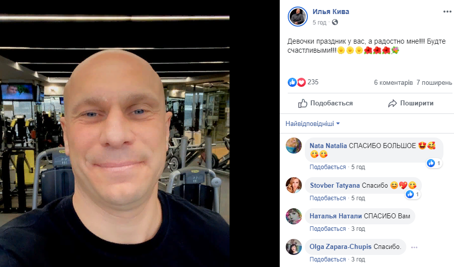 "Вітаю всіх жінок із Міжнародним жіночим днем!Нехай здійснюються всі ваші мрії та бажання! Залишайтеся прекрасними. Залишайтеся сильними. Відстоюйте свої переконання та цілі. Досягайте бажаного. І завжди будьте щасливими!".