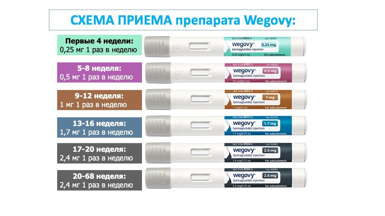 З 17 по 20 тиждень пацієнта виводять на цільову дозу 2,4 мг на тиждень. З 1 по 20 тиждень - це так званий вступний період, протягом якого лікар дивиться, як пацієнт переносить підвищену дозу семаглутиду.