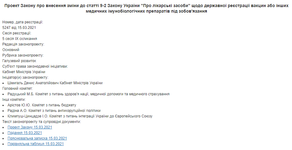 Міністерстві охорони здоров'я пояснило, що у межах співпраці з Фондом глобального доступу до вакцин проти коронавірусу (COVAX) країни-учасниці погоджуються звільнити виробників вакцини від відповідальності за наслідки введення препаратів. Це необхідно зробити "з урахуванням обставин, за яких були розроблені вакцини для профілактики COVID-19".