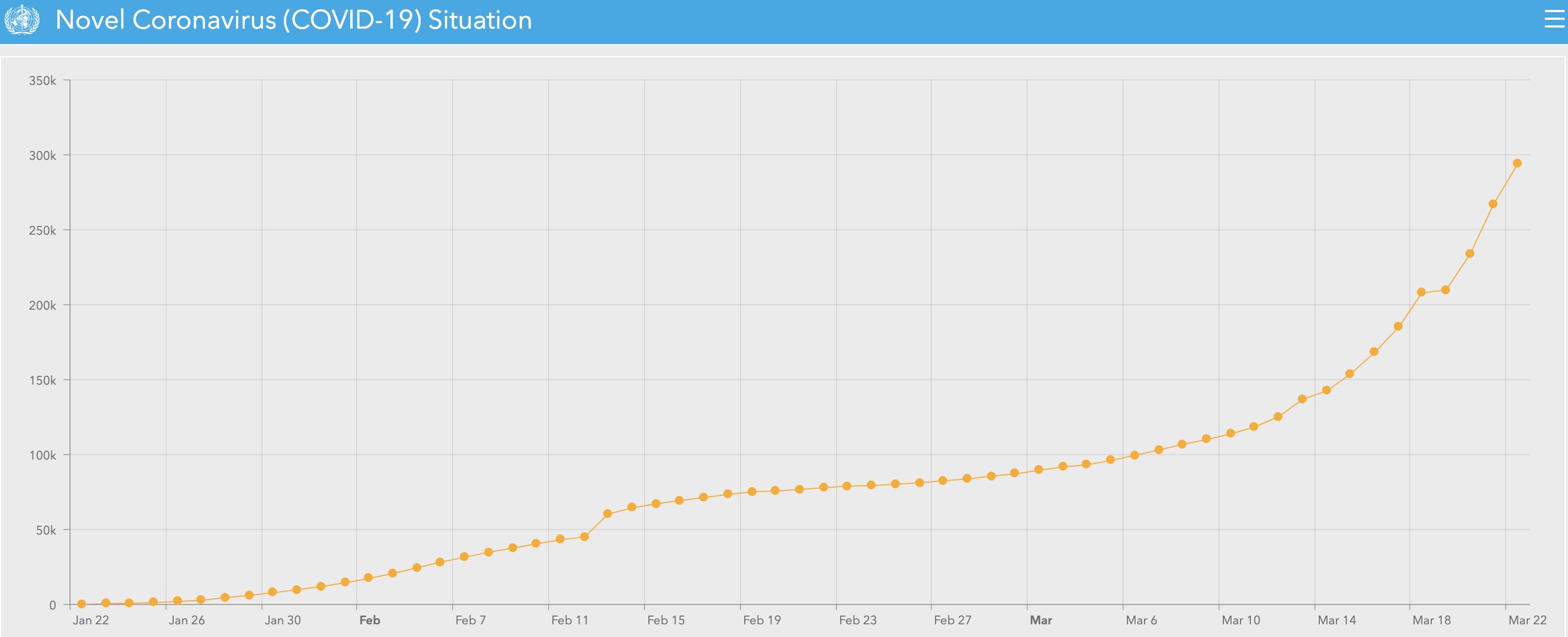"More than 300,000 cases of #COVID19 have now been reported to WHO, from almost every country in the 🌍.