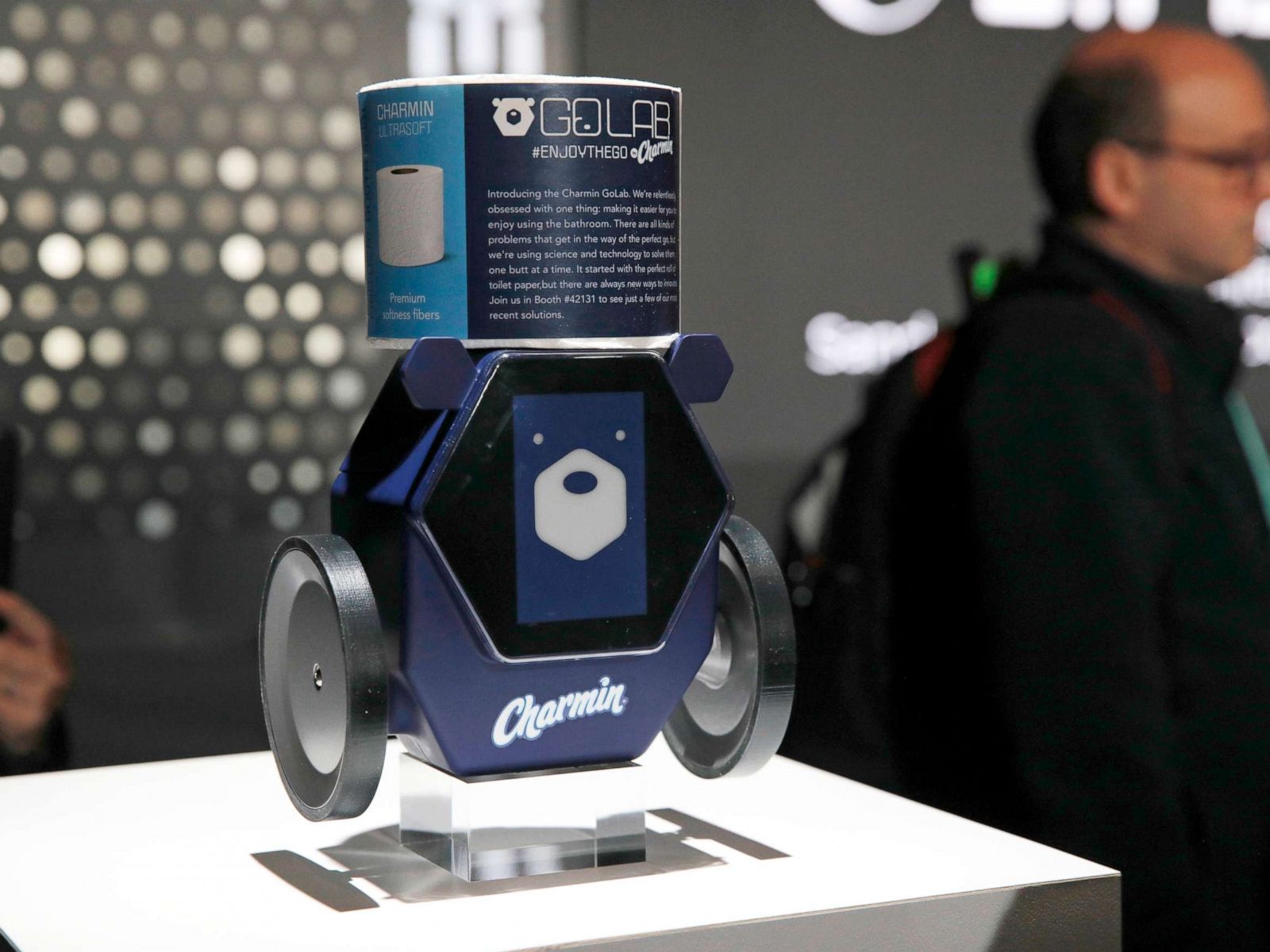 Першим був показаний невеликий двоколісний робот RollBot, ним можна керувати зі смартфона і, в разі необхідності, він подасть користувачеві рулон туалетного паперу.