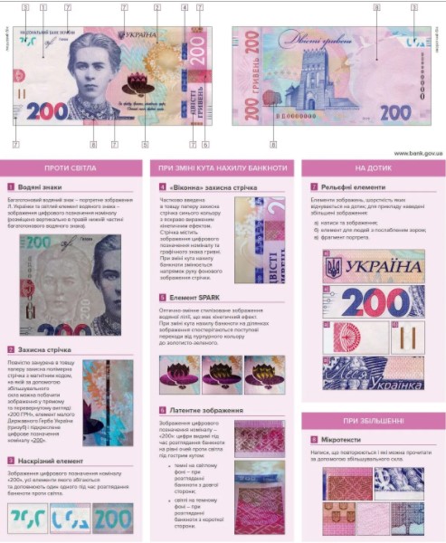 У НБУ зазначають – система захисту української гривні знаходиться на високому рівні, варто звертати увагу на інноваційні елементи захисту, які зможуть перевірити їхню справжність навіть на дотик. Приміром, на купюрі у 200 гривень є вісім елементів захисту, які досить складно повторити. Експерти радять дотримуватись наступних дій, аби ненароком не стати власником фальшивки: