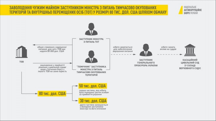 Заступника МінТОТ Юрія Гримчака та його "помічника" підозрюють у вимаганні хабарів за різноманітні "послуги". Національне антикорупційне бюро (НАБУ) оприлюднило дві схеми.