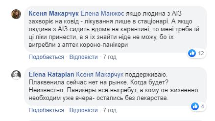 У коментарях люди підтверджували слова лікаря і відзначали, що з аптек зникають усі препарати, назви яких згадуються в новинах про випробування нового способу лікування коронавірусу.