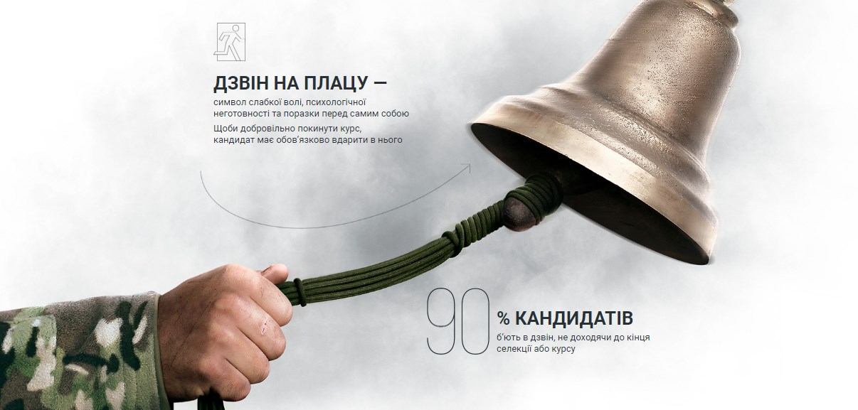 За його словами, пройти курс підготовки вдається приблизно лише 10% бійців. Ті, хто не витримують навантажень, мають можливість добровільно покинути курс. Водночас невіддільним атрибутом селекції є спеціальний дзвін, ударивши в який боєць сповіщає про своє рішення припинити своє перебування у тренувальному таборі.