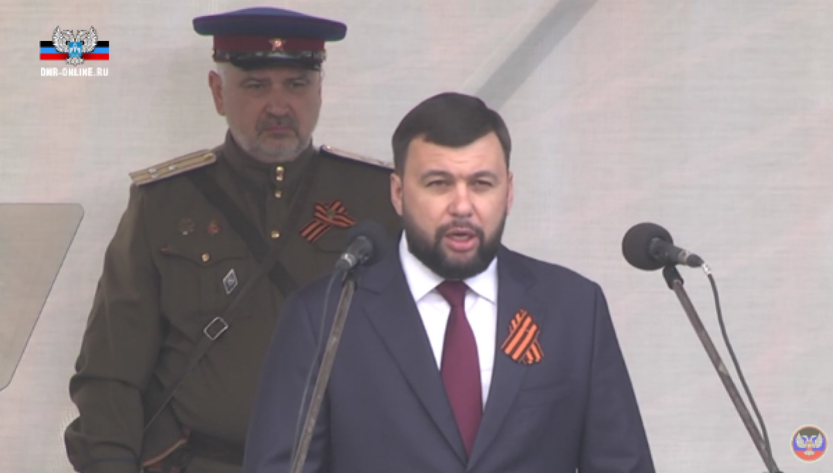 Во время парада в оккупированном Донецке рядом с главарем террористов "ДНР" Денисом Пушилиным замечен мужчина в форме НКВД.