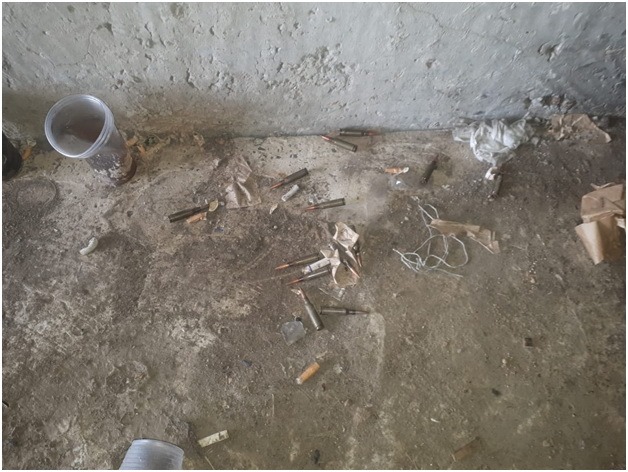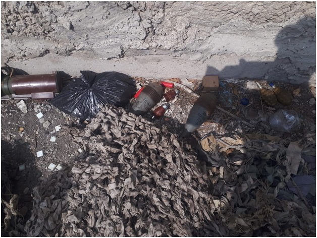 Также, во время следующих поисковых мер были обнаружены 2 гранаты Ф-1 с запалами, две мины со взрывателями, РПГ и пакет с патронами около 500 - 600 шт. Обзор прекращен до прибытия взрывотехников.