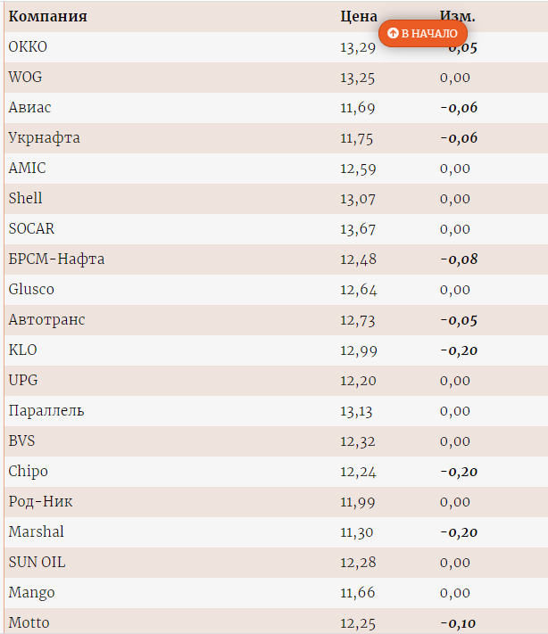 KLO, Chipo и Marshal опустили ценники на 20 коп./л, а такие сети как БРСМ-Нафта, Автотранс и Motto — на 5–10 коп./л.