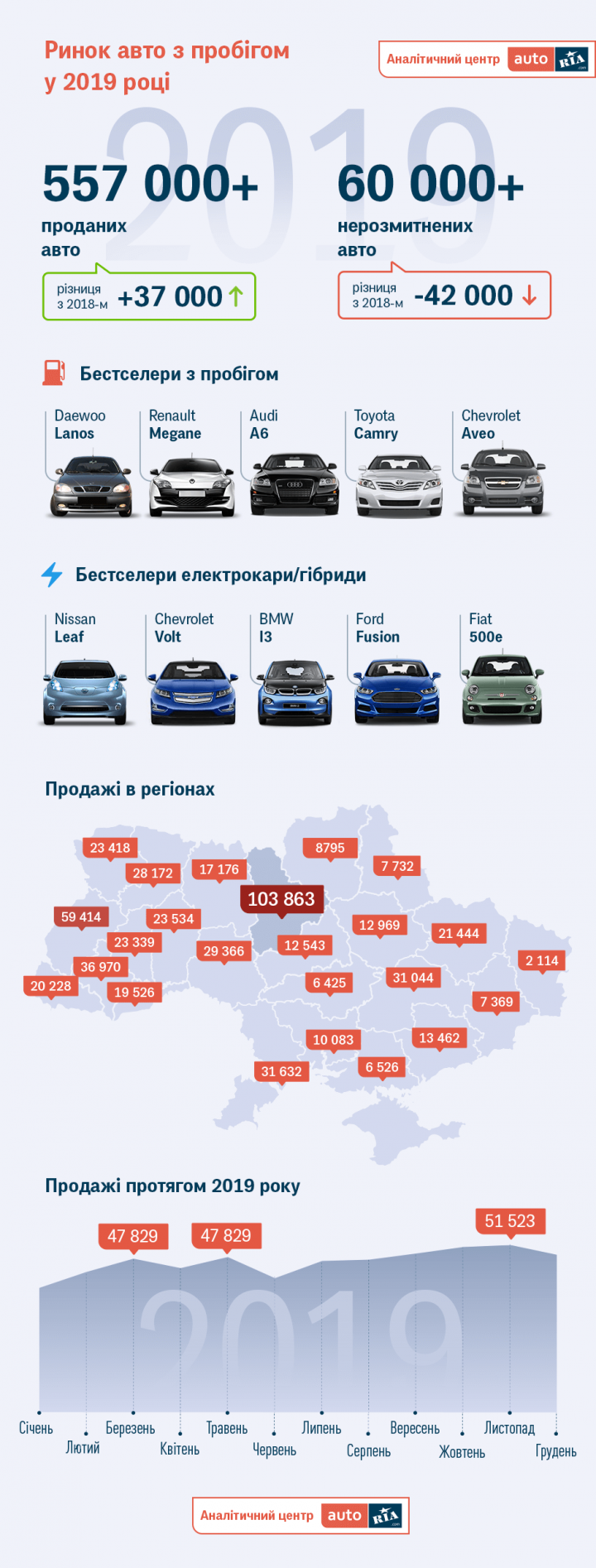 За 2019 год украинцы приобрели более 557 тыс. авто с пробегом, самая популярная модель - Daewoo Lanos.