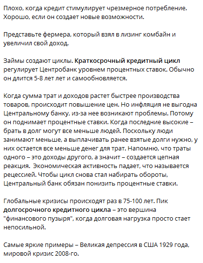 По словам украинского бизнесмена, глобальные кризисы в мире происходят раз в 75-100 лет. При правильном балансе экономика справляется и выходит из пике за 7-10 лет. Главное – доходы должны расти быстрее долга.