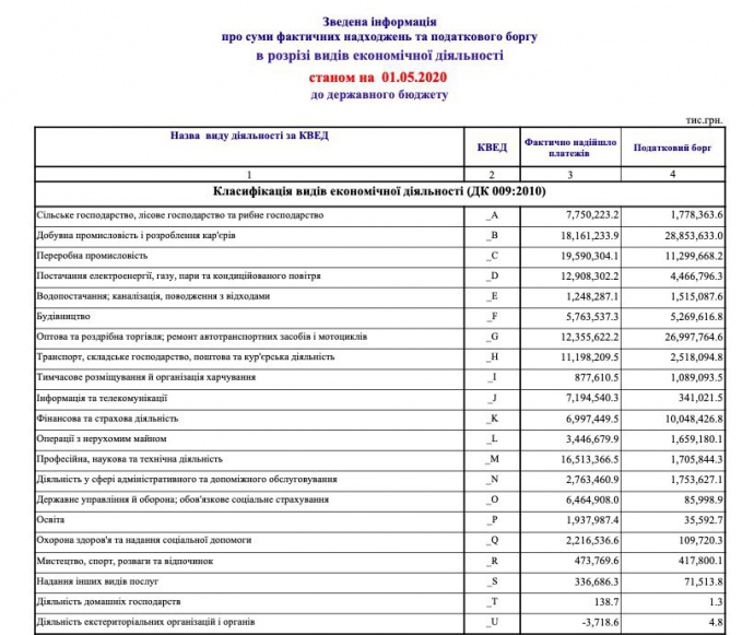 Государственная налоговая служба назвала сумму налогового долга предприятий и предпринимателей за январь-апрель 2020 года. Налоговики также назвали отрасли, которые недодали больше всего.