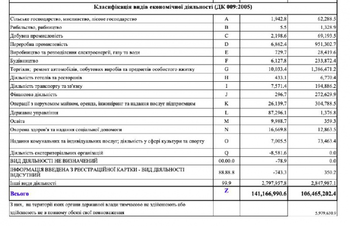 По данным обнародованного Гончаренко документа, больше всего налогов недодали государству предприятия добывающей промышленности - 28,85 млрд грн. На втором месте по налоговой задолженности - оптовая и оптовая торговля и ремонт транспортных средств - 26,97 млрд грн.