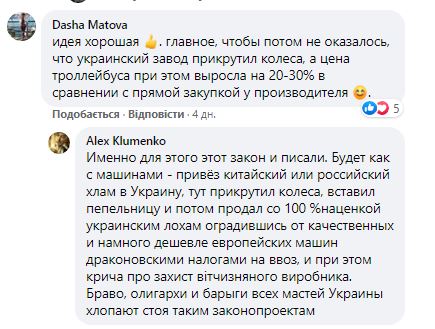 Пользователи соцсети этот законопроект оценили неоднозначно. Производители данной техники - с энтузиазмом, потому что в случае его принятия их продукция будет иметь преимущество перед более дешевыми китайскими, польскими или другими зарубежными аналогами.