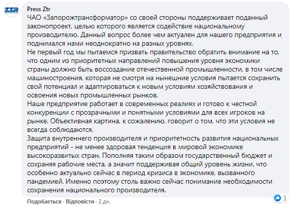 Эксперт неправительственной организации CMD-Ukraine (сообщества отраслевых специалистов и ученых, желающих способствовать модернизации экономики Украины) Игорь Гужва, один из авторов, заявил в собственном посте в Facebook, что "не все государства мира достигли успеха исключительно благодаря протекционизму, но мало кто обошелся без него", а также локализация, которая является, по сути, "фактическим освоением национальными производителями определенного количества стадий выпуска конечного иностранного продукта (вплоть до полного цикла)", всегда дает "чрезвычайный толчок экономическому развитию в стране и способствует ее индустриализации". Не удивительно, что среди сторонников законопроекта - Торгово-промышленная палата Украины, Украинский союз промышленников и предпринимателей, Федерация работодателей Украины.