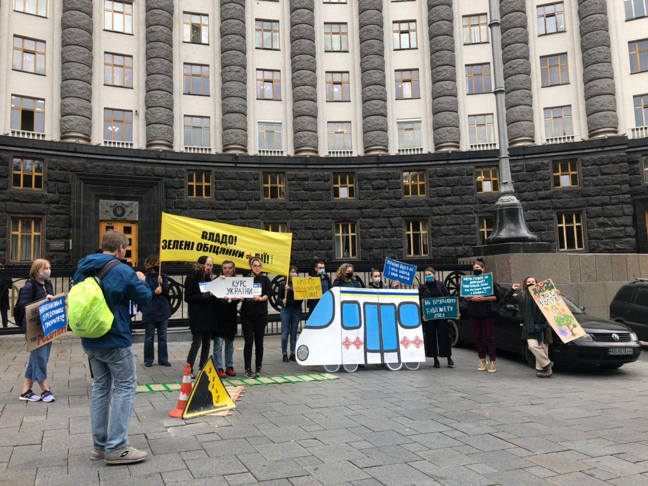 Активисты 6 октября у здания правительства по случаю саммита Украина-ЕС устроили акцию-перфоманс под названием "Верните Украину на зеленый курс" с требованиями, чтобы правительство не только давало "зеленые" обещания, а реально защищало окружающую среду. По словам организаторов, в госбюджете-2021 нет запланированных средств на природоохранные мероприятия, а вместо чистой и безопасной энергетики власти продолжают поддерживать "грязную" угольную.