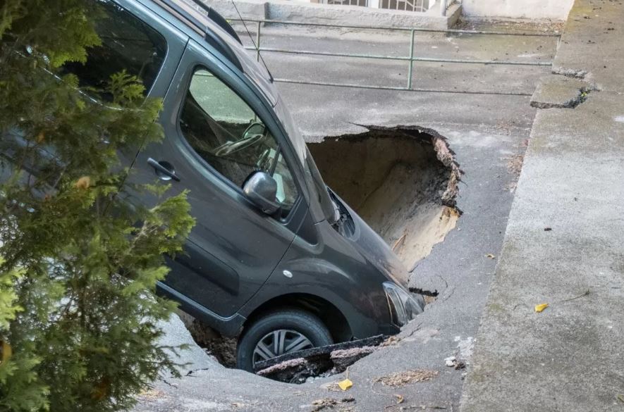 Из-за обвала образовалась настолько глубокая яма, что автомобиль наполовину оказался под землей. Достать транспортное средство возможно только с помощью эвакуатора. Место обвала правоохранители оградили, однако на указанном участке парковки, стояли еще два автомобиля.