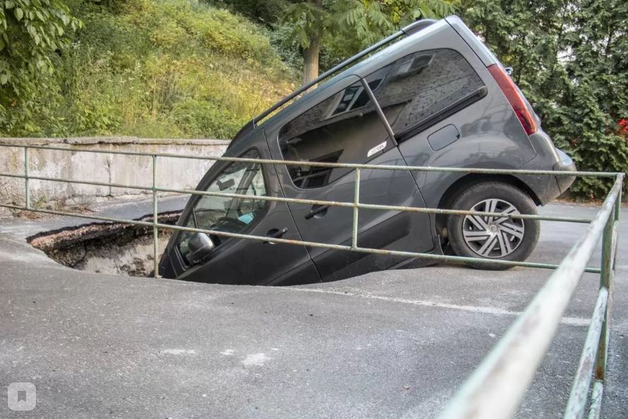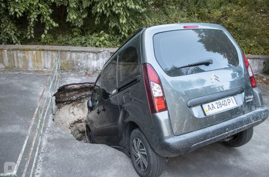 Во вторник, 18 июня, в самом центре Киева два автомобиля провалились под асфальт. Случайными участниками инцидента стали Citroen и Volkswagen. Водитель последнего сумел вовремя выехать, избежав глубокого провала.