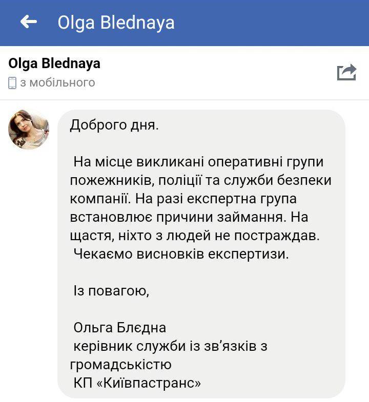 Известно, что жертв и пострадавших нет, сообщает Киев оперативный на странице в Facebook.