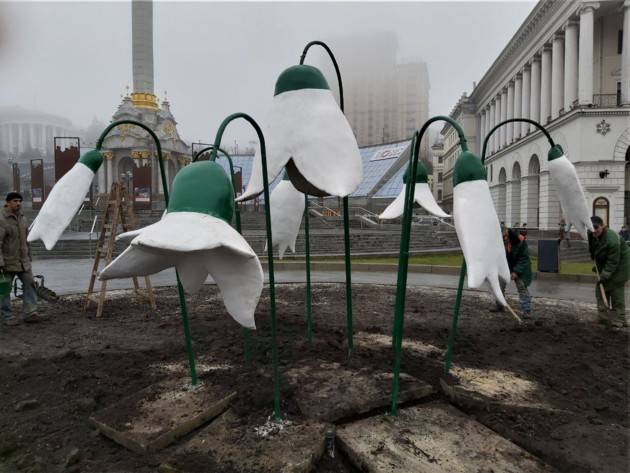 В Киеве на Майдане "выросли" гигантские подснежники (Фото)