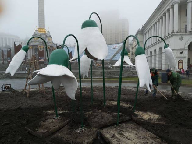 "Мы монтируем новую фотозону, которую дарим всем киевлянкам и гостям столицы к празднику весны – 8-го марта. Подходы к фотозоне вымостим мраморной крошкой. Наши подснежники сделаны из бетона. Но, не волнуйтесь, закрепляем их надежно, не упадут. Все будет безопасно. Перед ними высадим тюльпаны и гиацинты, если это будет вписываться в общую композицию", – рассказали в КП СЗН Шевченковского района.