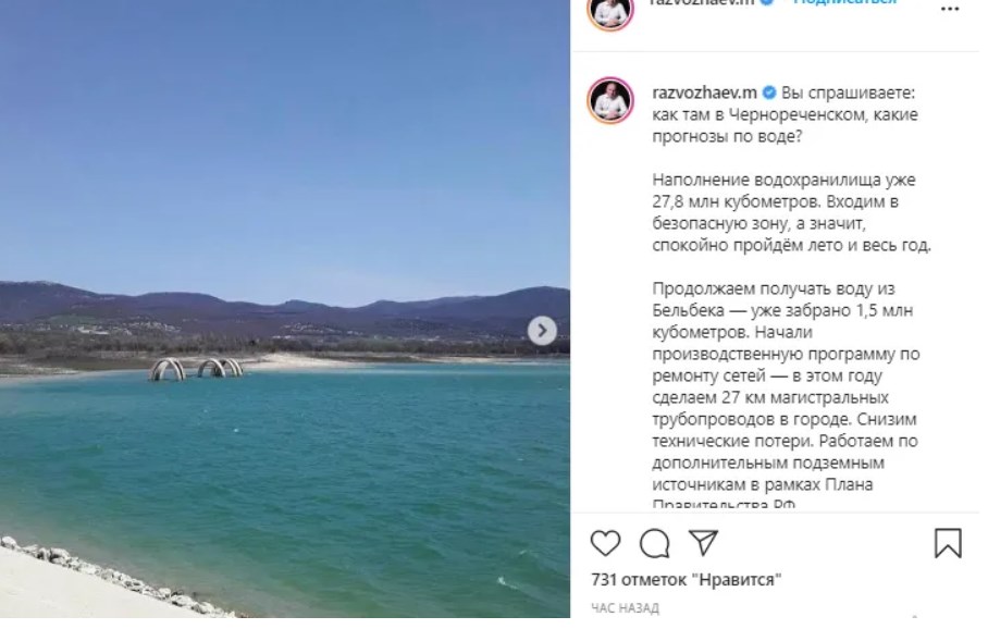 В целом речь идет о наличии 27,8 миллионов кубометров в конце 2021 года. Об этом 27 апреля сообщил "губернатор Севастополя" Михаил Развожаев в "Инстаграми".