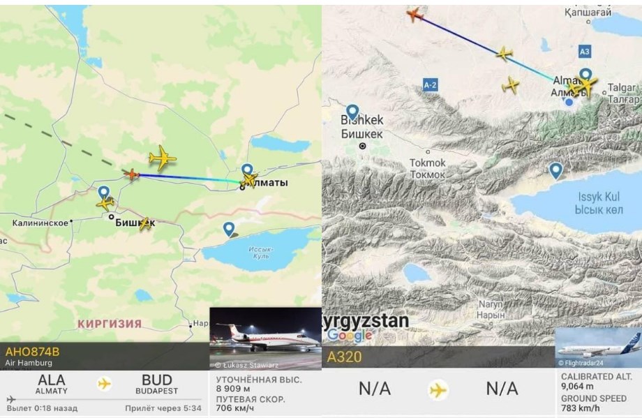 Самолеты, по данным сервиса Flightradar, отправились из Астаны и Алматы в Европу. В телеграммах отметили, что будущее президента Токаева и клана Назарбаева находится под угрозой.