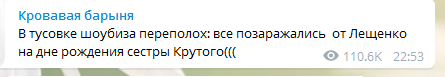"В тусовке шоубиза переполох: все позаражались от Лещенко на дне рождения сестры Крутого", - написала Собчак.