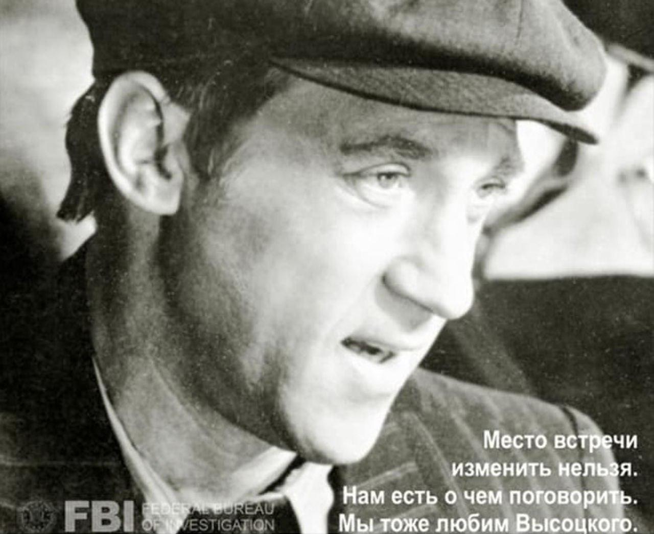Как известно, ФБР запустило в соцсетях Facebook и Instagram рекламу на русском языке, где используется изображение Владимира Высоцкого. Объявление представляет собой чёрно-белую фотографию певца, поверх которой написано белыми буквами на русском языке: "Место встречи изменить нельзя. Нам есть о чем поговорить. Мы тоже любим Высоцкого". В объявлении ФБР призывает поделиться информацией, которая может помочь бюро.