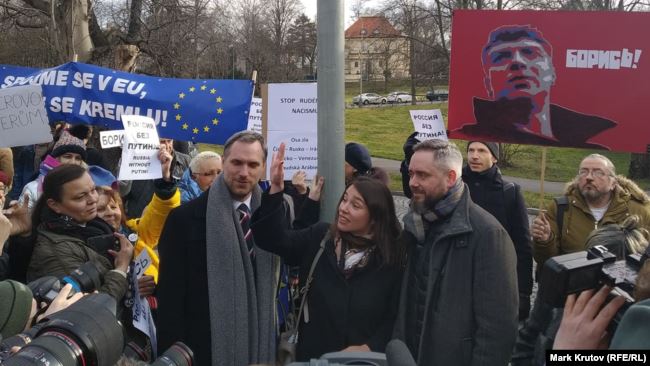 В Праге в пятую годовщину убийства российского оппозиционного политика Бориса Немцова прошла церемония переименования площади, на которой расположено здание посольства России, сообщает в четверг, 27 января, Радио Свобода.
