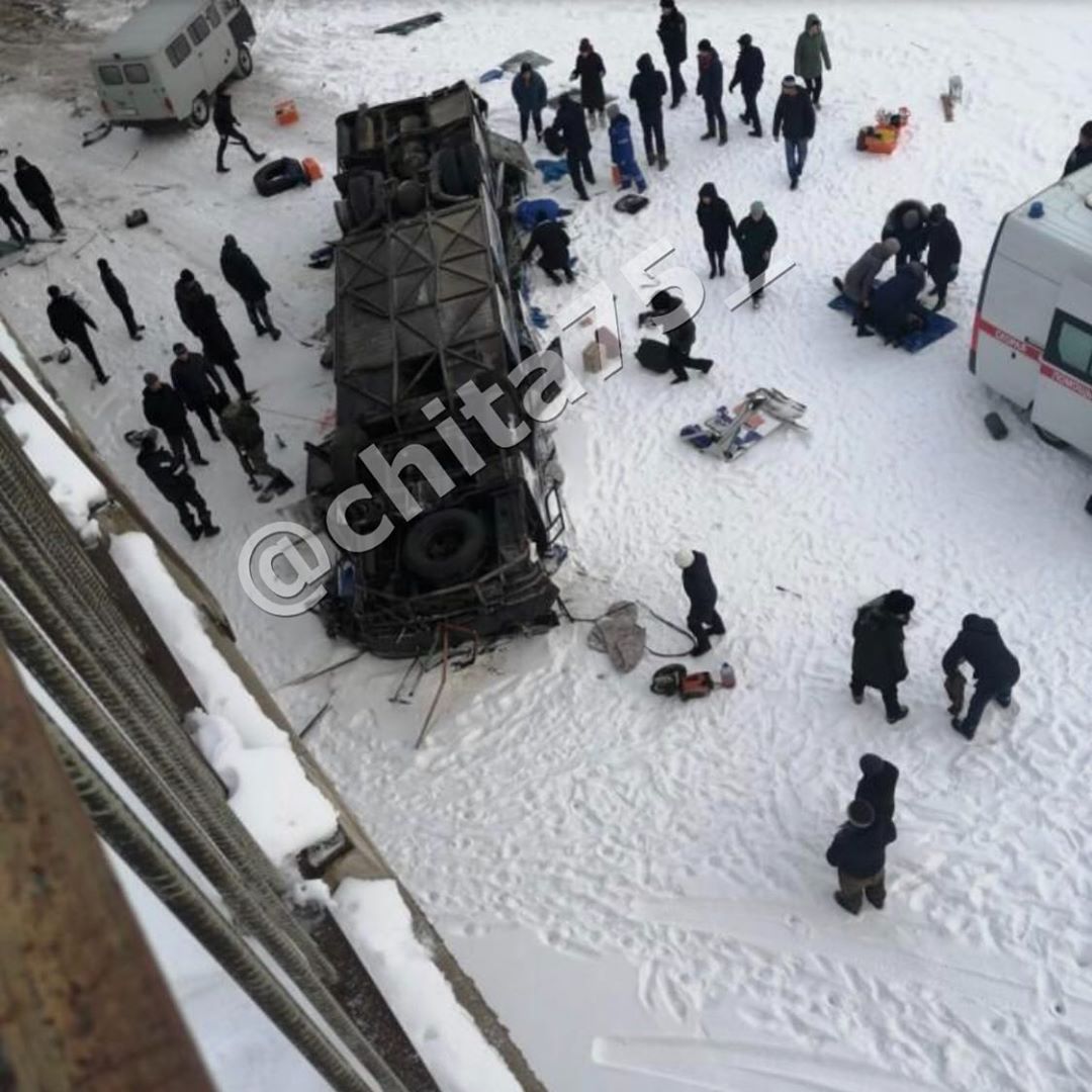 Сегодня, 1 декабря, в Забайкальском крае Российской Федерации пассажирский автобус упал с моста и перевернулся.
