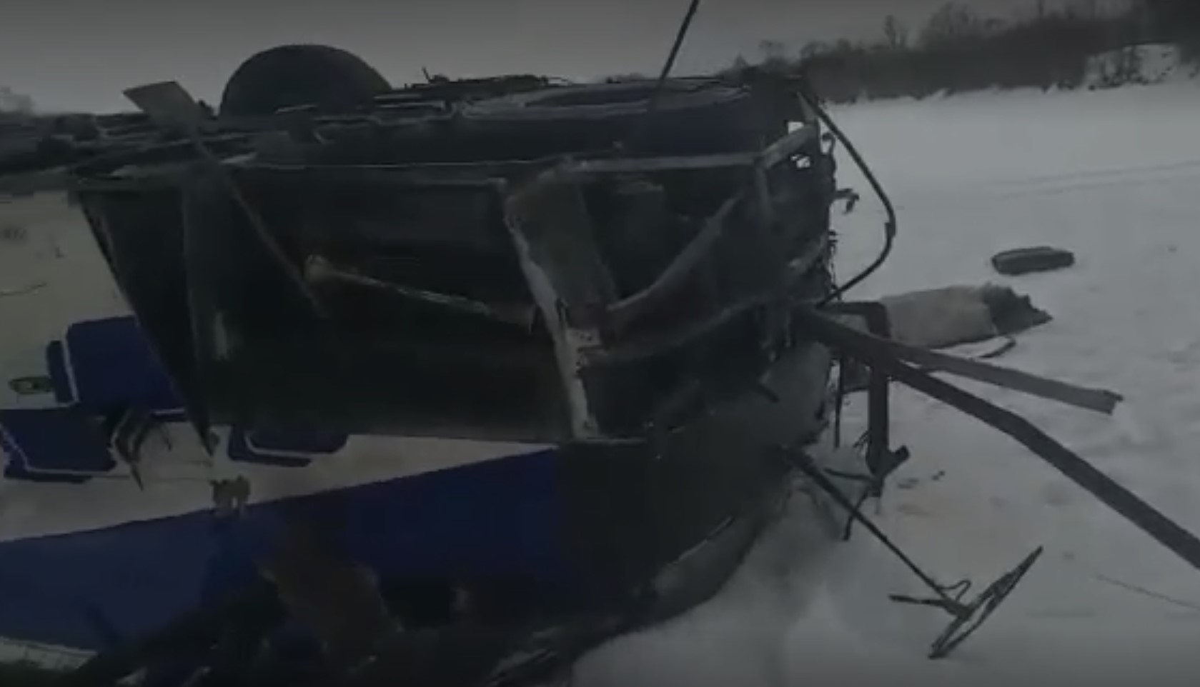 По данным ГИБДД, причиной аварии стало лопнувшее переднее колесо. Из-за него автобус съехал с дороги и упал на лед реки Куэнга с высоты 6 м, уточнили в МЧС.